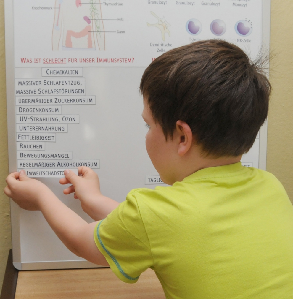 Impressions of the campus holiday for kids by the CRC 854. On July the 5th and 12th 2018, science-hungry young researchers discovered the world of immune cells. They had lots of fun competing in the immune cell quiz, making buttons, isolating DNA from strawberries and visiting a working research lab. PhD students and staff members of the SFB demonstrated the world of the immune system to the junior researchers. Additionally, all children could take home comics, audio books and cuddly toys by the dsai e.V.. These will hopefully encourage our visitors to learn more about the wonderful world of the immune system at home!