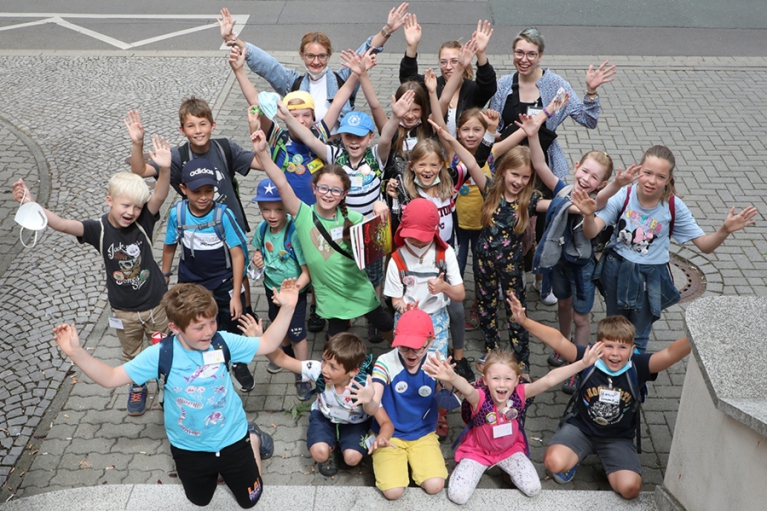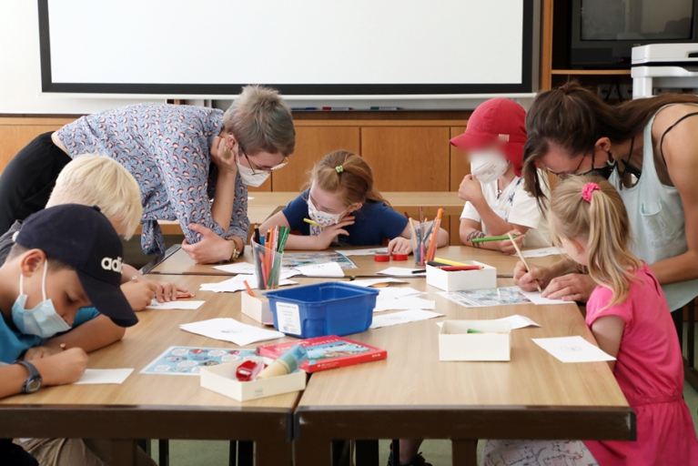 After an involuntary break in 2020 we could again welcome little scientists on the 29th of July and 5th of August. Within the framework of the campus holidays for kids of the family office of the OVGU they visited us, to discover the world of immune cells. PhD students of the MGK 854, students of the M.Sc. Immunology and staff members of CRC 854 gave them insights into the immune system. During an interactive lecture the children learned what this mysterious immune system actually is and how our body police protects us from intruders. Numerous questions and enthusiastic participation showed that the children had already heard many of the key words due to the pandemic but making sense of them is actually not so easy. Afterwards the litte discoverers could get gloves on and isolate DNA from strawberries - every succesful isolation was excitedly greeted. Furthermore the children could make immune cell buttons and take them home afterwards and everyone got a copy of "Immun im Cartoon", a comic for further reading at home. Thank you very much to the dsai e.V. (Patientenorganisation for angeborene Immundefekte) for providing these free of charge!